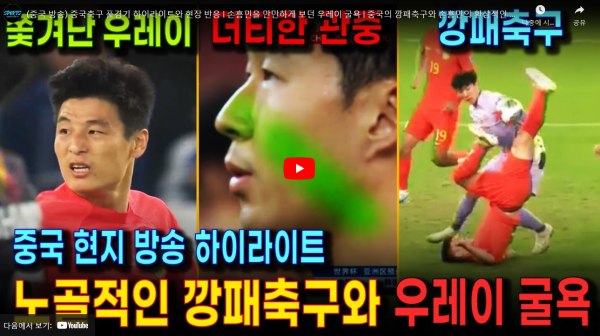 (중국 방송) 중국축구 풀경기 하이라이트와 현장 반응 | 손흥민을 만만하게 보던 우레이 굴욕 | 중국의 깡패축구와 손흥민의 환…